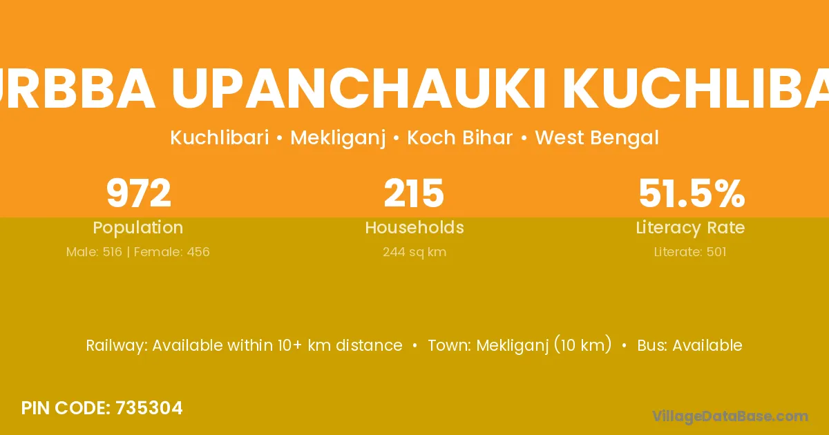 Purbba Upanchauki Kuchlibari village has a total population of 972 people, of which 516 are males and 456 are females.