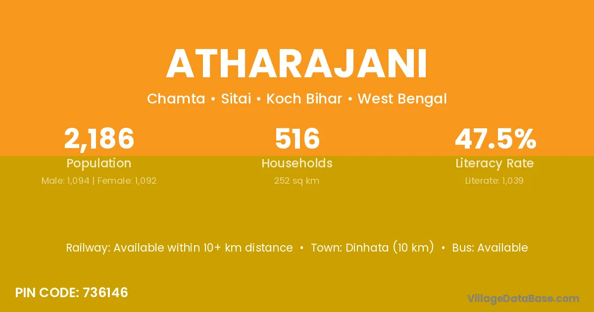 Dinhata (10 km) is the nearest town to Atharajani village for major economic activities and is located approximately 10 km away.
