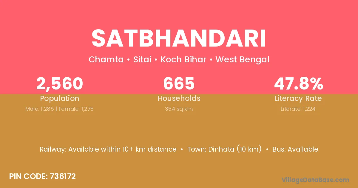 Dinhata (10 km) is the nearest town to Satbhandari village for major economic activities and is located approximately 10 km away.