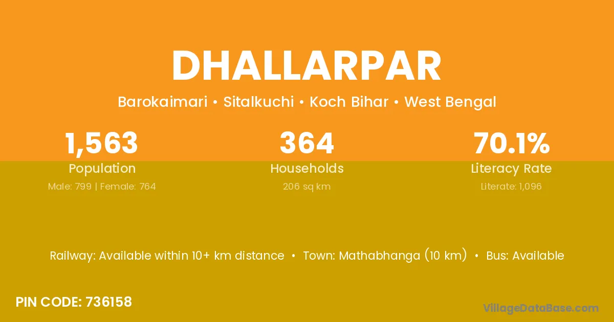 Mathabhanga (10 km) is the nearest town to Dhallarpar village for major economic activities and is located approximately 10 km away.