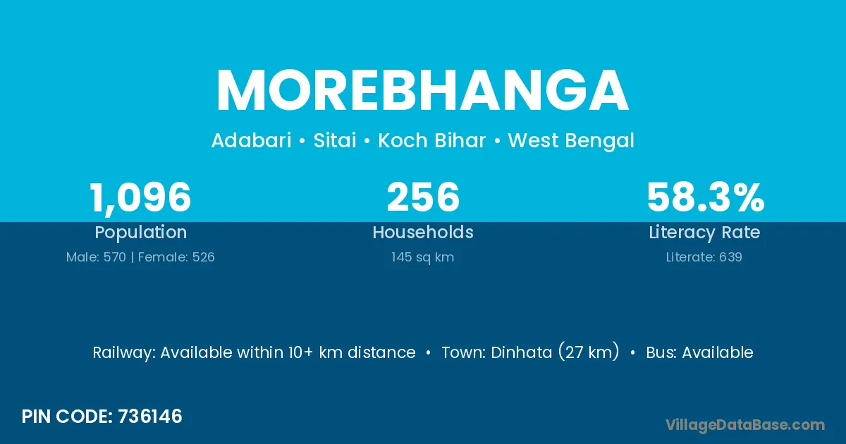 Mathabhanga (11 km) is the nearest town to Morebhanga village for major economic activities and is located approximately 11 km away.
