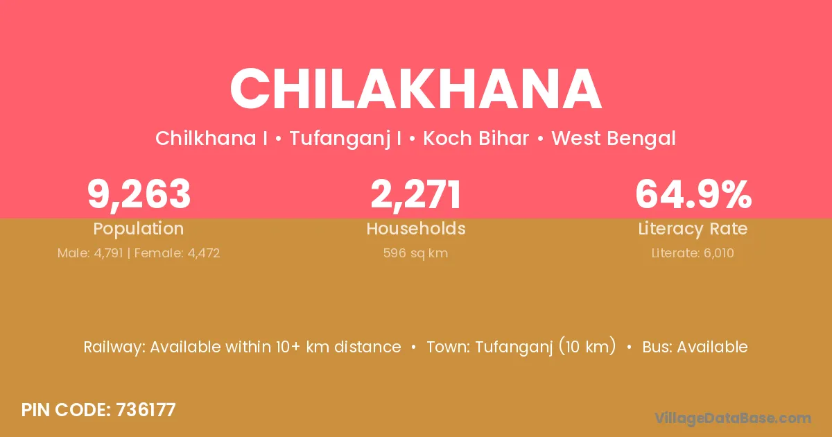 Tufanganj (10 km) is the nearest town to Chilakhana village for major economic activities and is located approximately 10 km away.