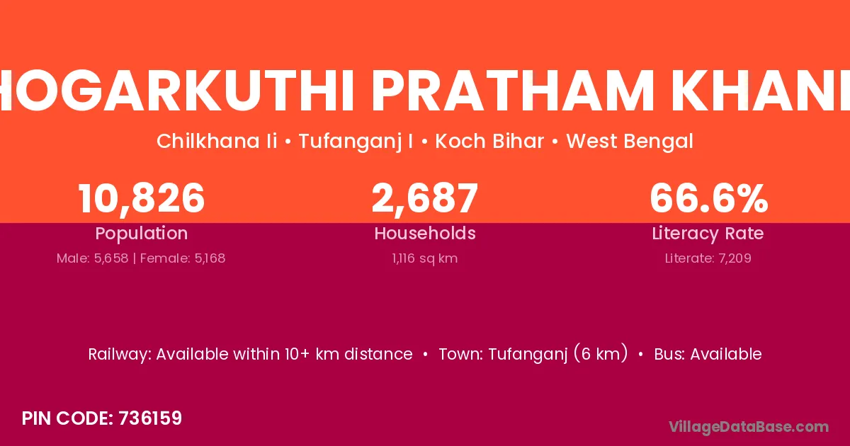 Tufanganj (6 km) is the nearest town to Ghogarkuthi Pratham Khanda village for major economic activities and is located approximately 6 km away.
