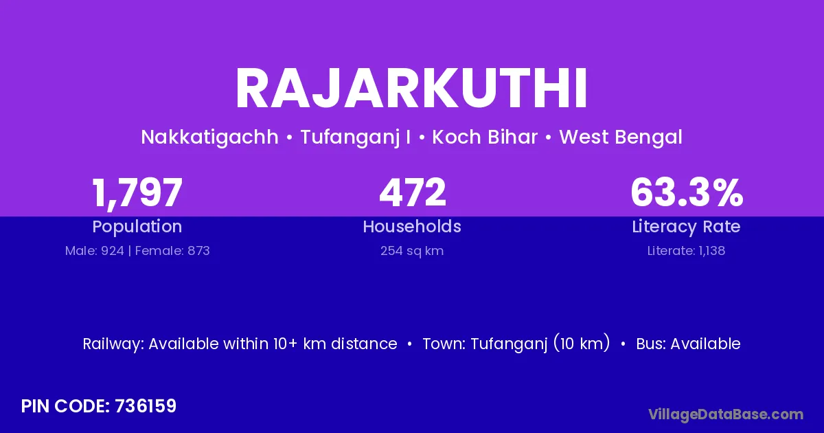Tufanganj (10 km) is the nearest town to Rajarkuthi village for major economic activities and is located approximately 10 km away.