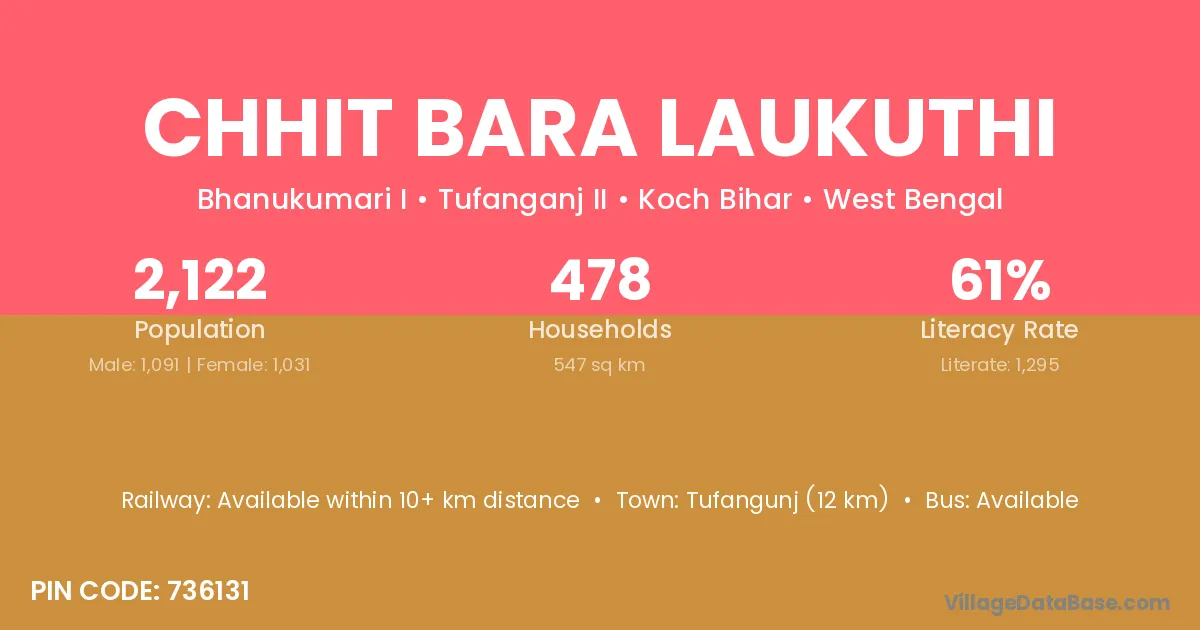 There are approximately 478 households in Chhit Bara Laukuthi village.