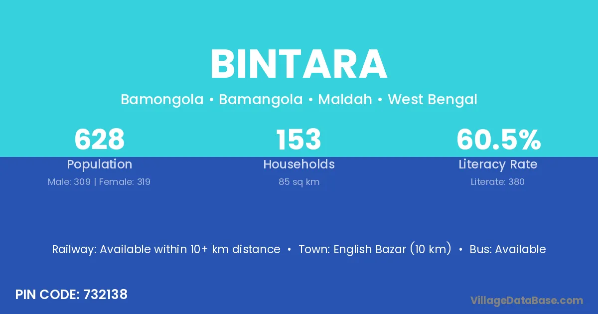 English Bazar (10 km) is the nearest town to Bintara village for major economic activities and is located approximately 10 km away.