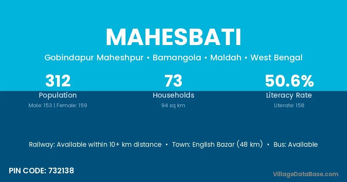 English Bazar (48 km) is the nearest town to Mahesbati village for major economic activities and is located approximately 48 km away.