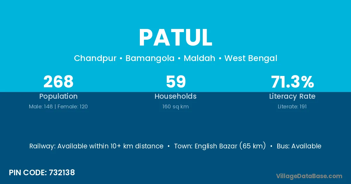 Patul village is located in the Bamangola Subdivision of the Maldah district in West Bengal.