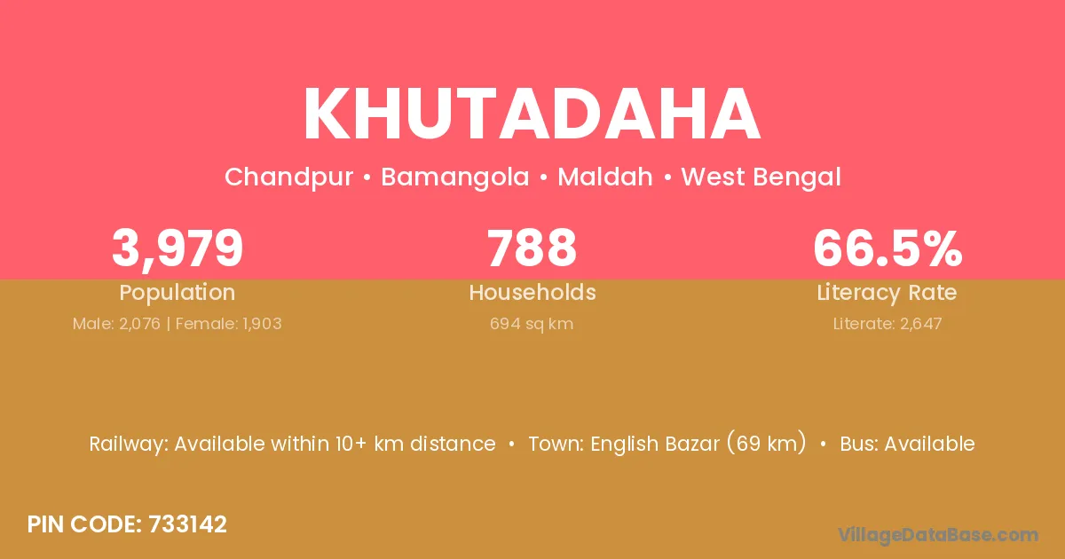 English Bazar (69 km) is the nearest town to Khutadaha village for major economic activities and is located approximately 69 km away.