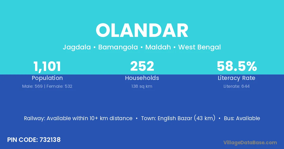 English Bazar (43 km) is the nearest town to Olandar village for major economic activities and is located approximately 43 km away.