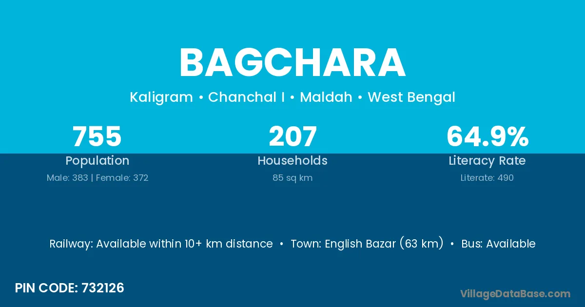 English Bazar (63 km) is the nearest town to Bagchara village for major economic activities and is located approximately 63 km away.