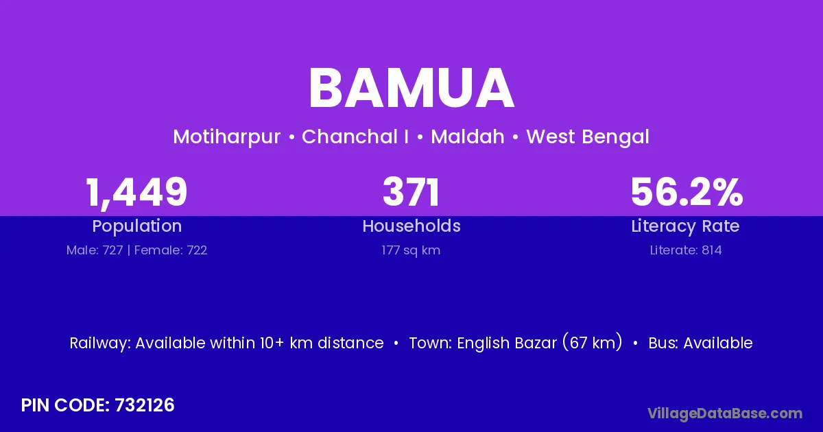 Bamua village is located in the Chanchal I Subdivision of the Maldah district in West Bengal.