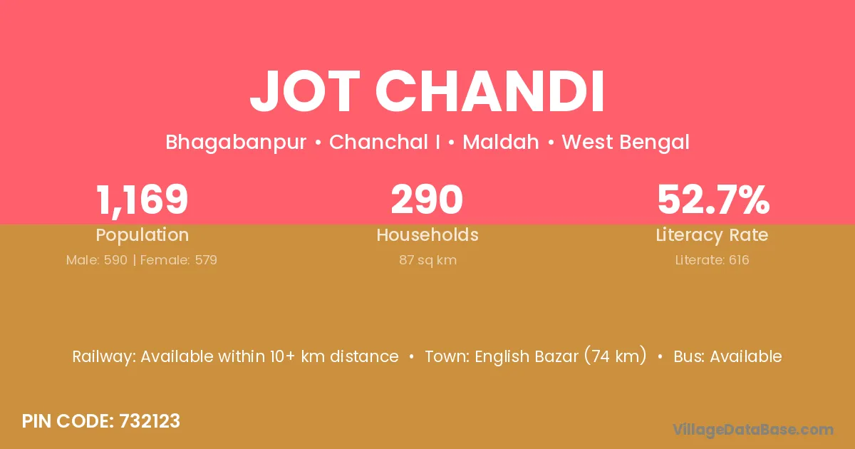 Jot Chandi village is located in the Chanchal I Subdivision of the Maldah district in West Bengal.