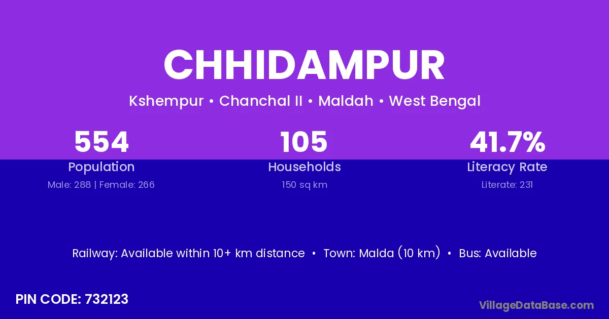 Malda (10 km) is the nearest town to Chhidampur village for major economic activities and is located approximately 10 km away.