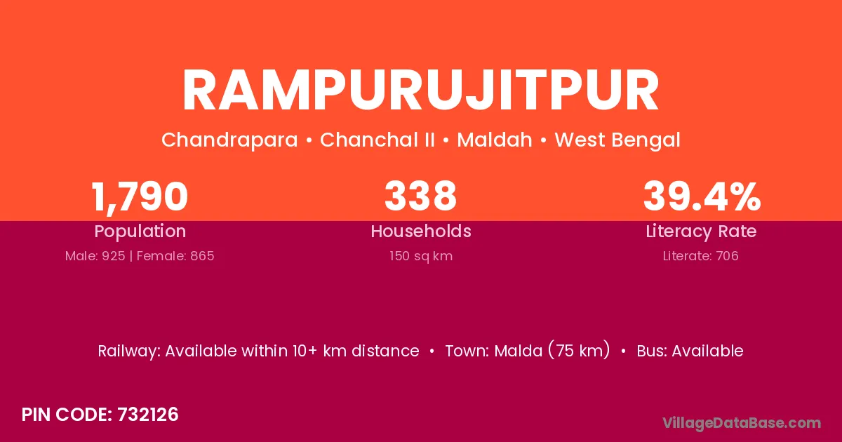 Malda (75 km) is the nearest town to Rampurujitpur village for major economic activities and is located approximately 75 km away.