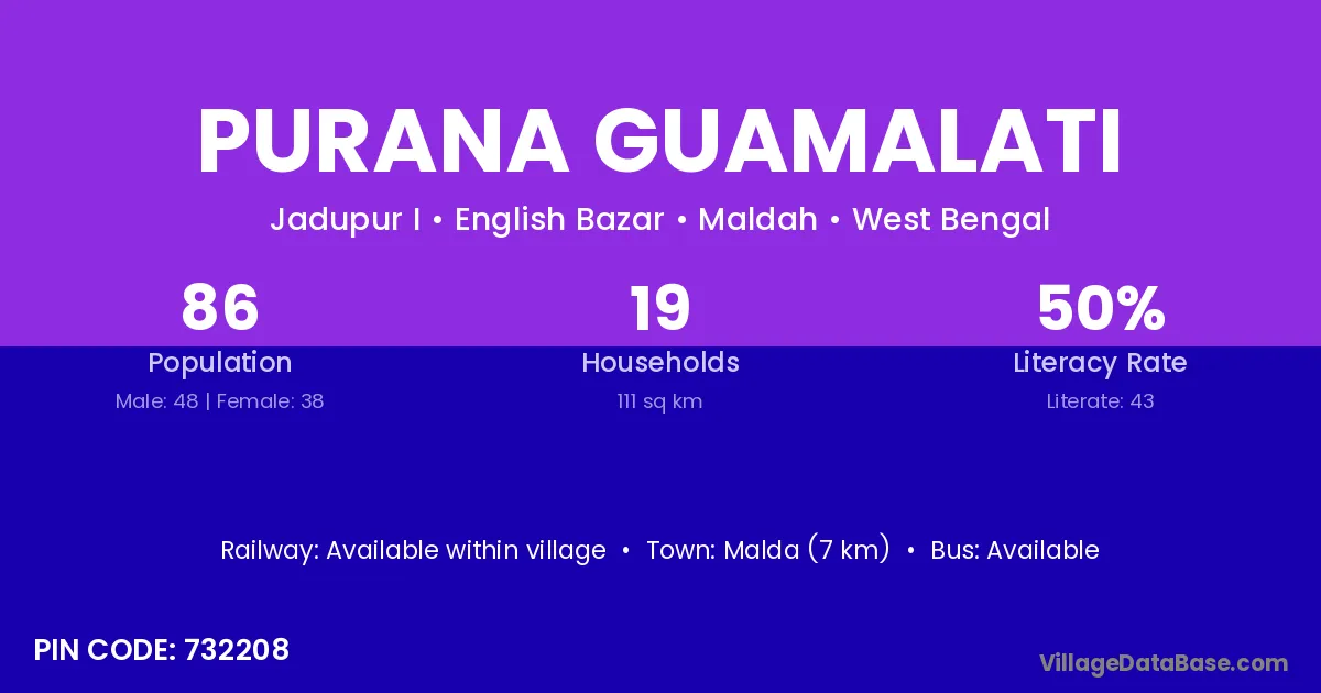 Malda (7 km) is the nearest town to Purana Guamalati village for major economic activities and is located approximately 7 km away.