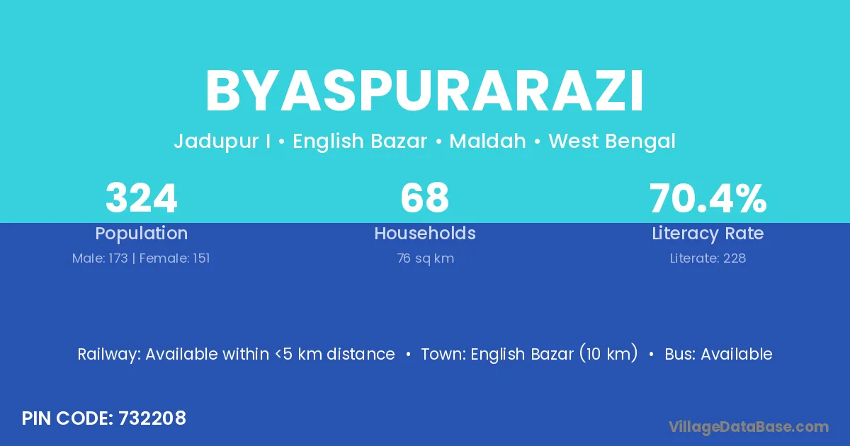 Byaspurarazi village is located in the English Bazar Subdivision of the Maldah district in West Bengal.