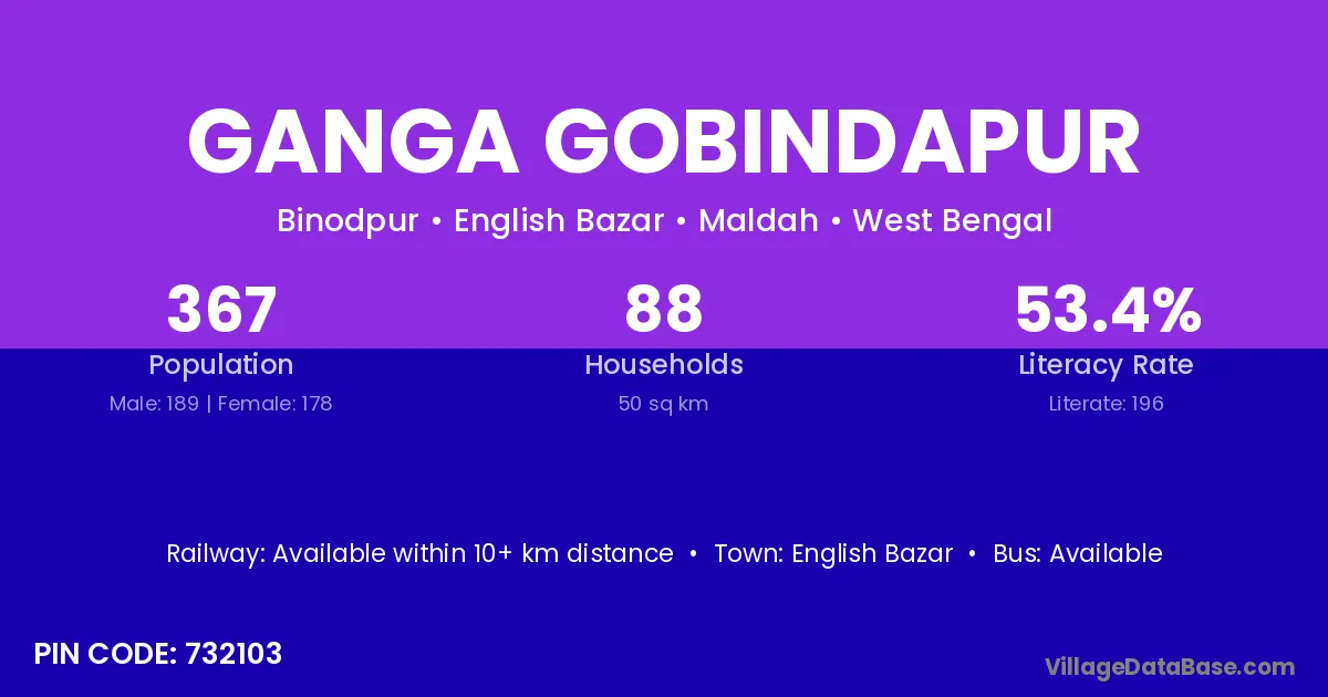 Ganga Gobindapur village has a total population of 367 people, of which 189 are males and 178 are females.
