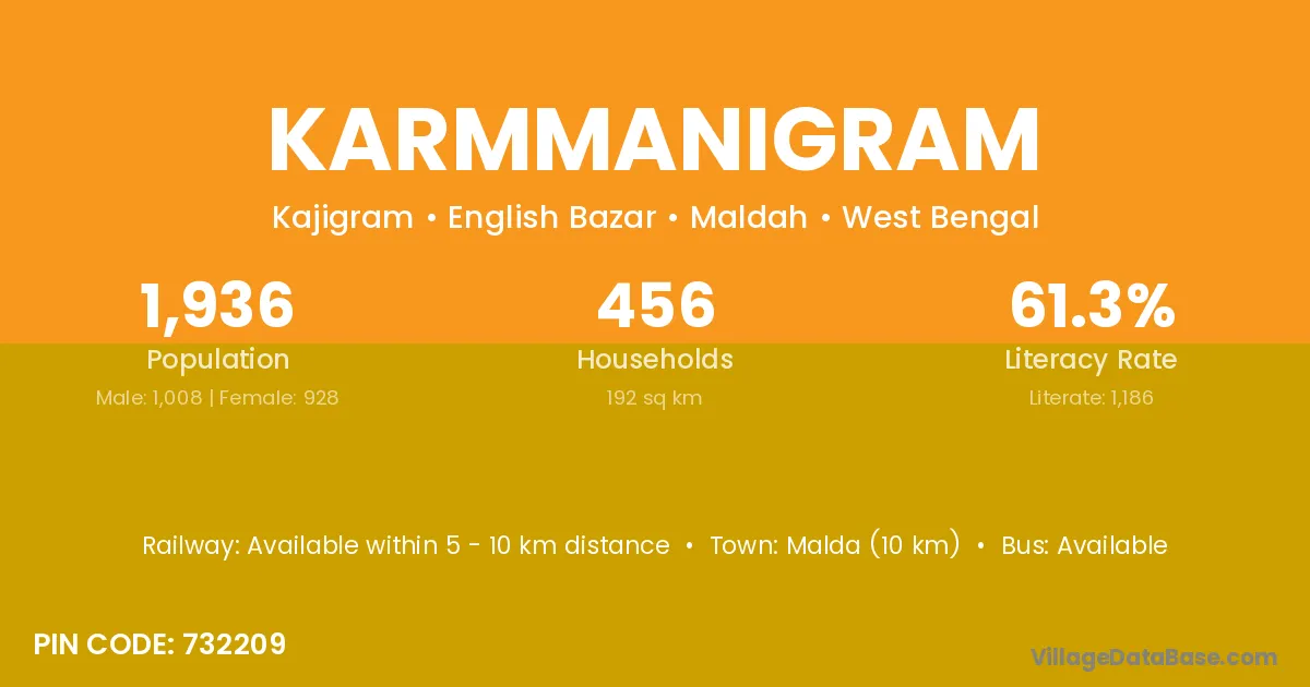 Malda (10 km) is the nearest town to Karmmanigram village for major economic activities and is located approximately 10 km away.