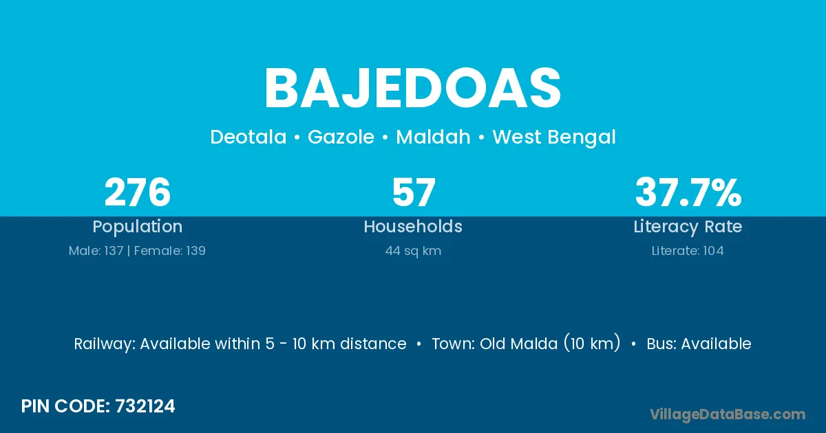 Old Malda (10 km) is the nearest town to Bajedoas village for major economic activities and is located approximately 10 km away.