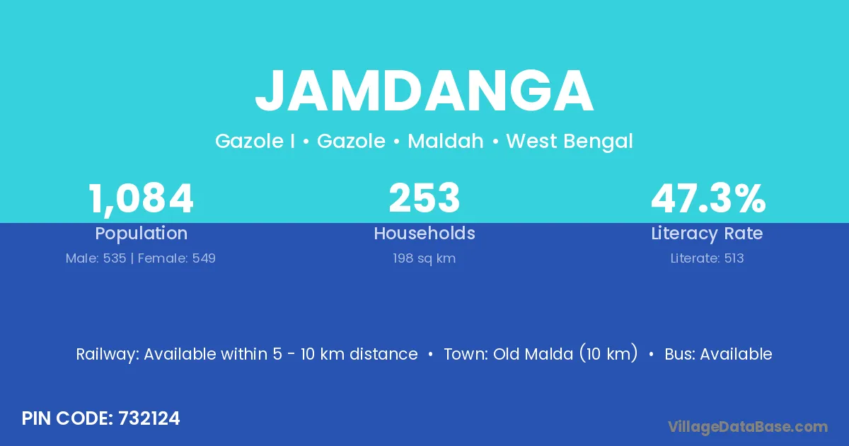 Old Malda (10 km) is the nearest town to Jamdanga village for major economic activities and is located approximately 10 km away.