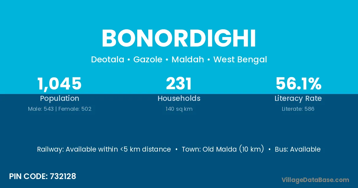 Old Malda (10 km) is the nearest town to Bonordighi village for major economic activities and is located approximately 10 km away.