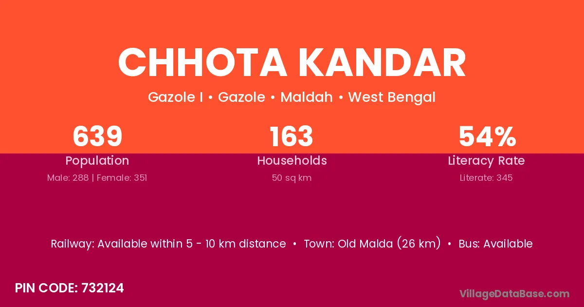 Old Malda (26 km) is the nearest town to Chhota Kandar village for major economic activities and is located approximately 26 km away.