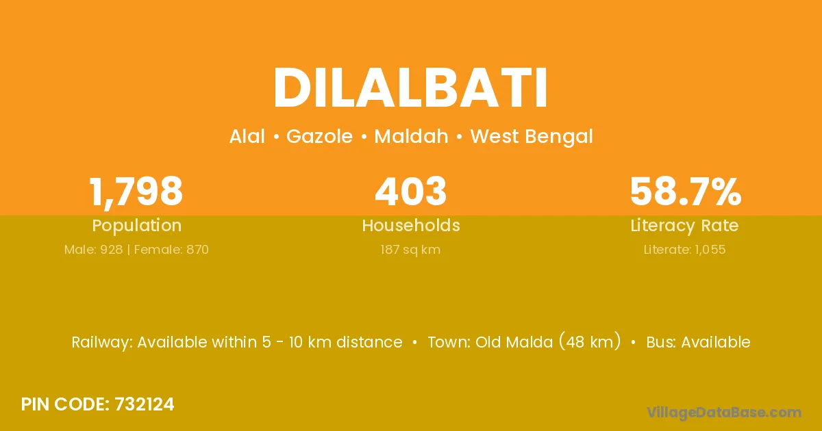 Old Malda (48 km) is the nearest town to Dilalbati village for major economic activities and is located approximately 48 km away.