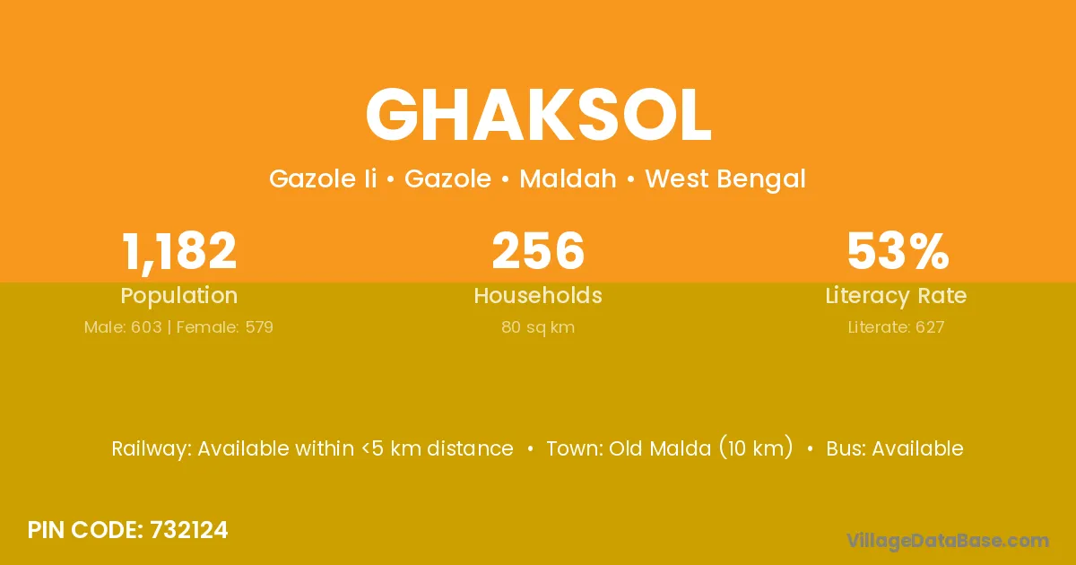 Old Malda (10 km) is the nearest town to Ghaksol village for major economic activities and is located approximately 10 km away.