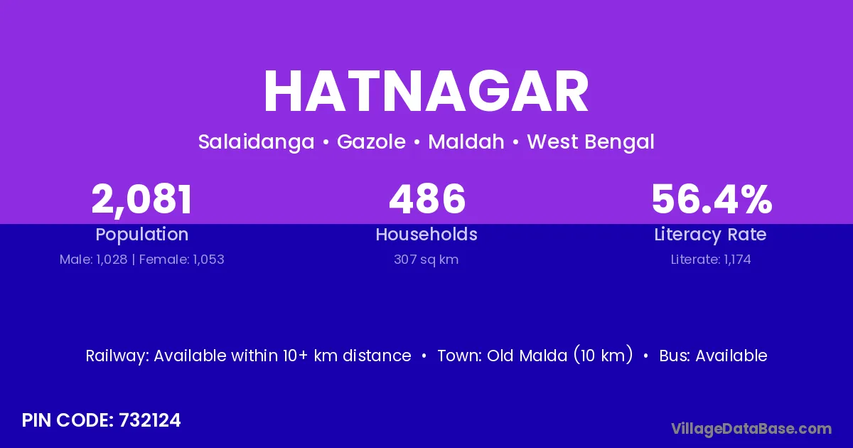 Old Malda (10 km) is the nearest town to Hatnagar village for major economic activities and is located approximately 10 km away.
