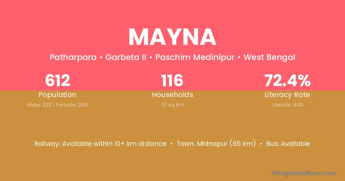 Old Malda (10 km) is the nearest town to Mayna village for major economic activities and is located approximately 10 km away.