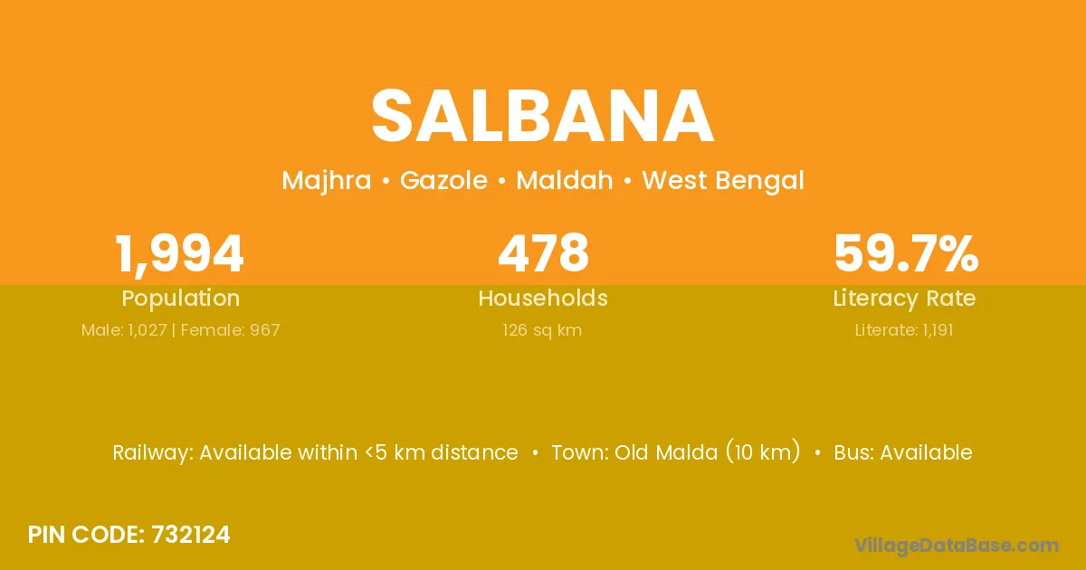 Salbana village is located in the Gazole Subdivision of the Maldah district in West Bengal.