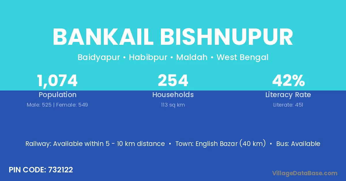 English Bazar (40 km) is the nearest town to Bankail Bishnupur village for major economic activities and is located approximately 40 km away.