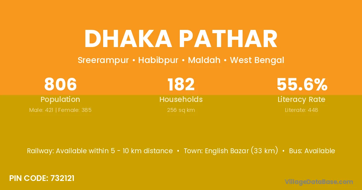 English Bazar (33 km) is the nearest town to Dhaka Pathar village for major economic activities and is located approximately 33 km away.