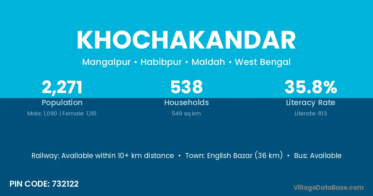 English Bazar (36 km) is the nearest town to Khochakandar village for major economic activities and is located approximately 36 km away.