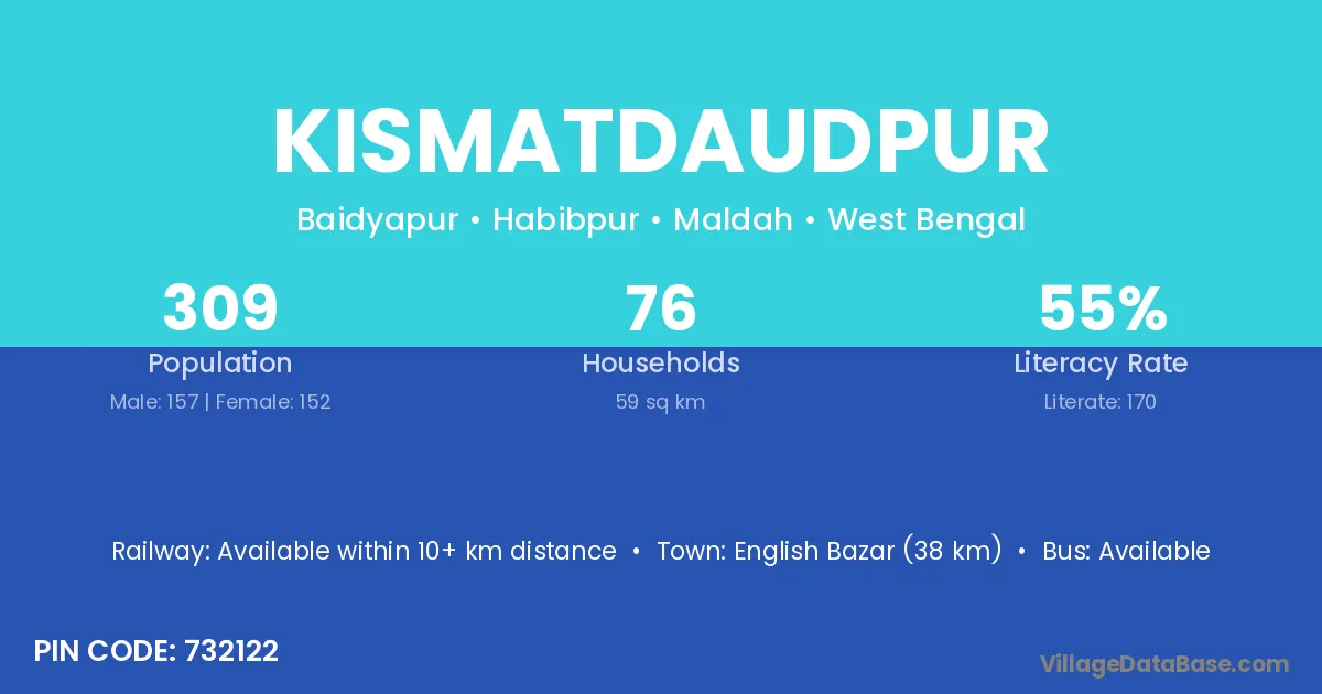 English Bazar (38 km) is the nearest town to Kismatdaudpur village for major economic activities and is located approximately 38 km away.