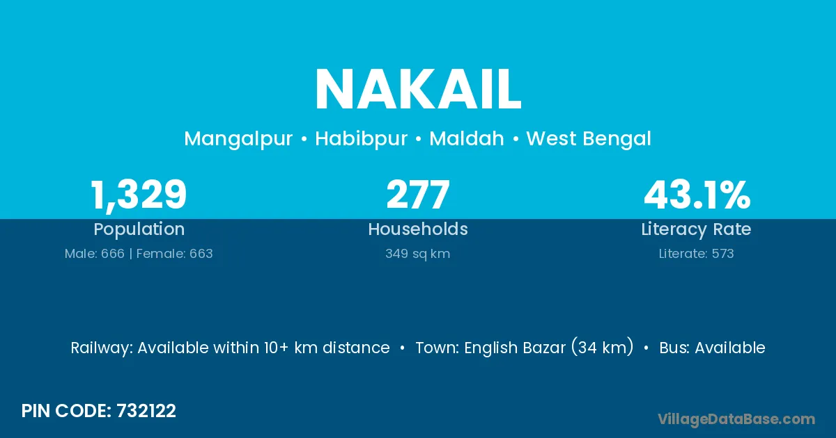 English Bazar (34 km) is the nearest town to Nakail village for major economic activities and is located approximately 34 km away.