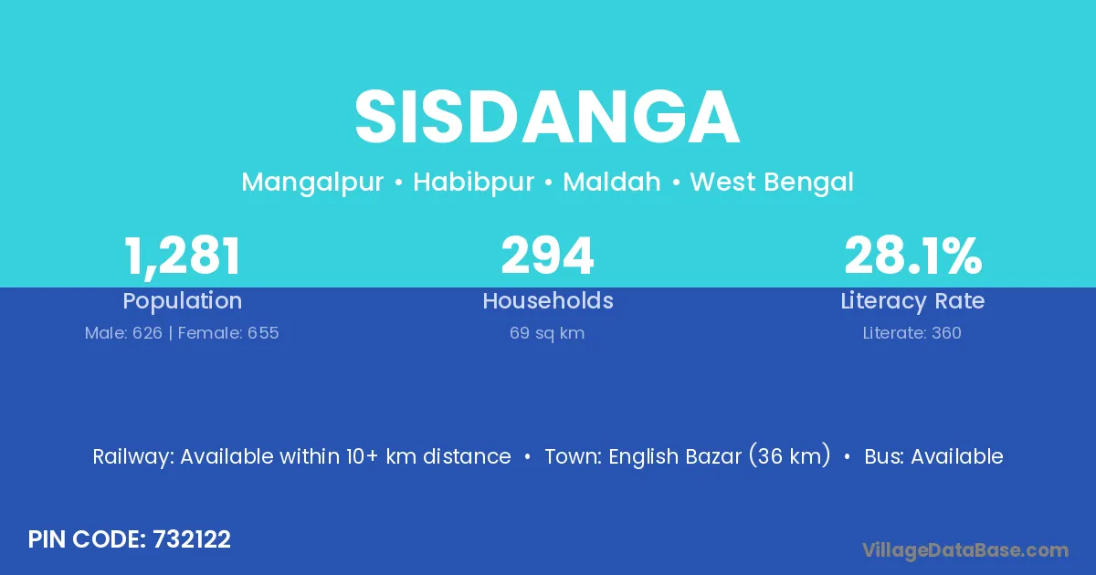 English Bazar (36 km) is the nearest town to Sisdanga village for major economic activities and is located approximately 36 km away.