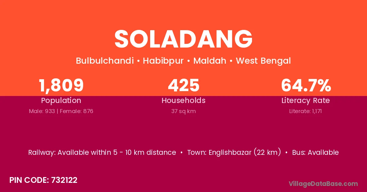 Englishbazar (22 km) is the nearest town to Soladang village for major economic activities and is located approximately 22 km away.