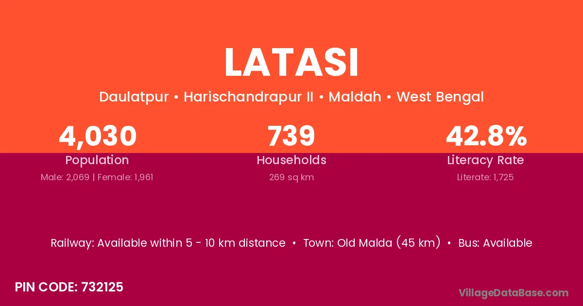 Old Malda (45 km) is the nearest town to Latasi village for major economic activities and is located approximately 45 km away.