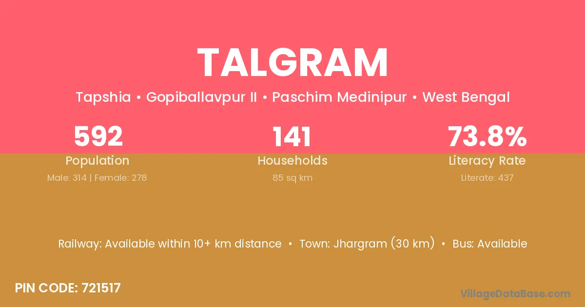 According to Census 2011 information, the village code of Talgram village is 732125.