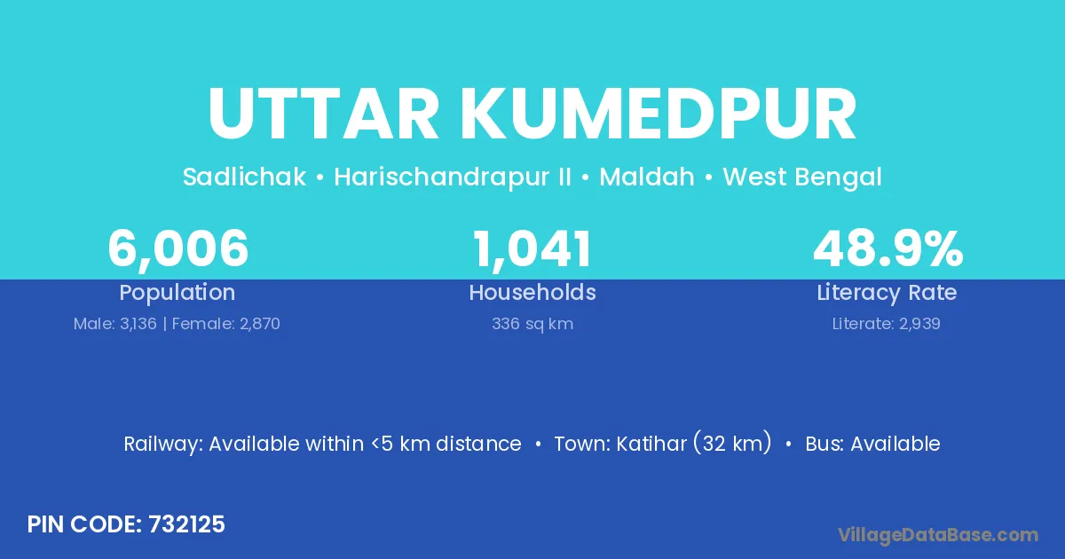 Katihar (32 km) is the nearest town to Uttar Kumedpur village for major economic activities and is located approximately 32 km away.