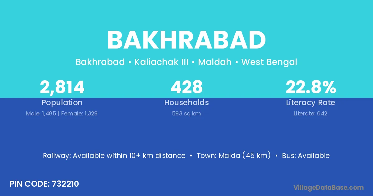 Malda (45 km) is the nearest town to Bakhrabad village for major economic activities and is located approximately 45 km away.