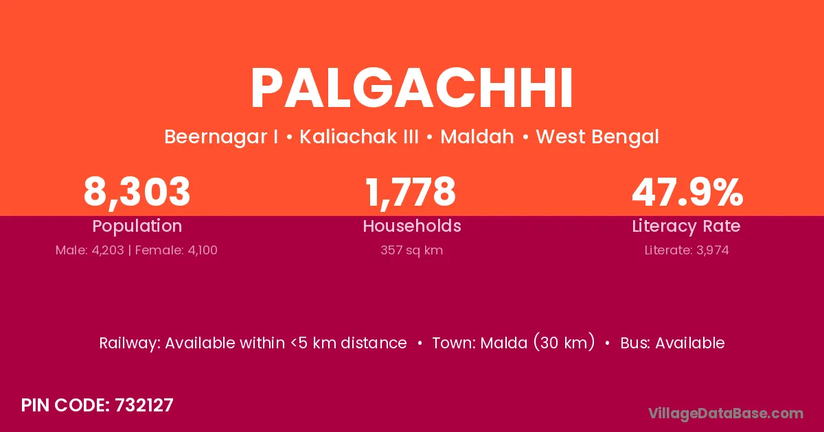 Malda (30 km) is the nearest town to Palgachhi village for major economic activities and is located approximately 30 km away.