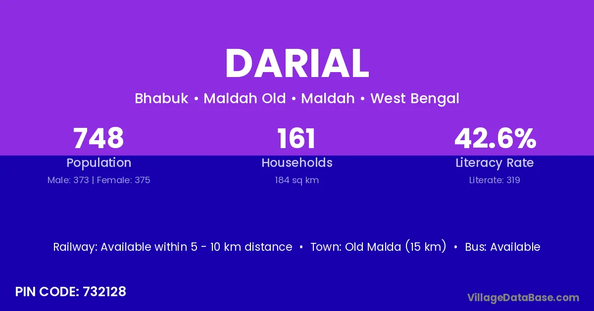 Old Malda (15 km) is the nearest town to Darial village for major economic activities and is located approximately 15 km away.