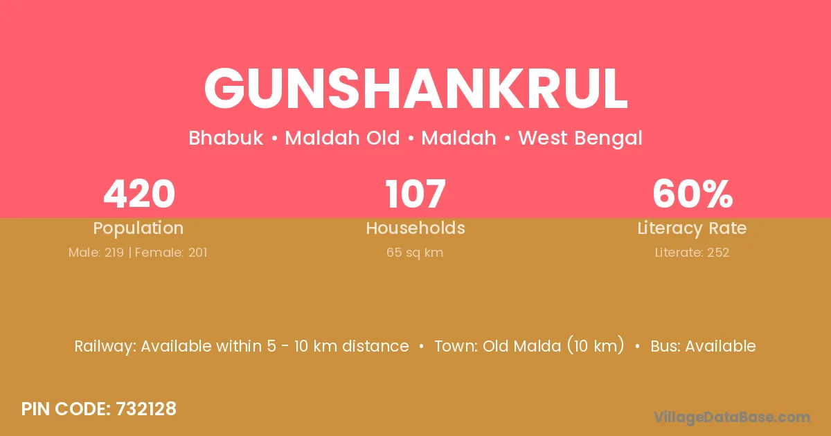 Old Malda (10 km) is the nearest town to Gunshankrul village for major economic activities and is located approximately 10 km away.