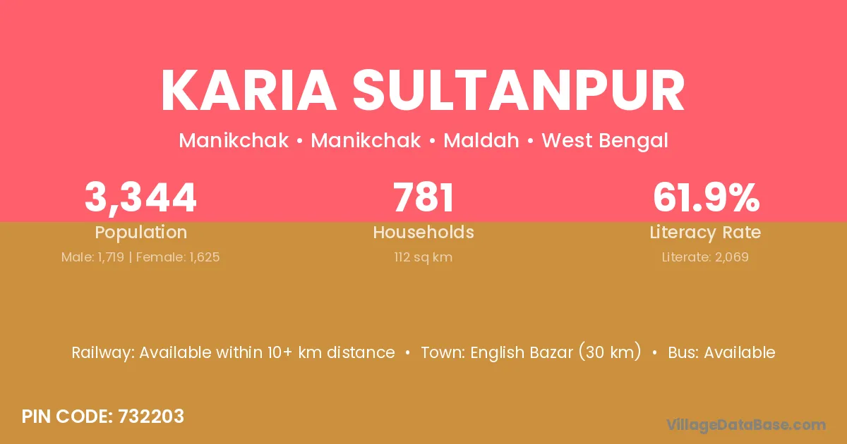 English Bazar (30 km) is the nearest town to Karia Sultanpur village for major economic activities and is located approximately 30 km away.