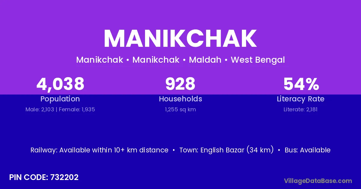 English Bazar (34 km) is the nearest town to Manikchak village for major economic activities and is located approximately 34 km away.