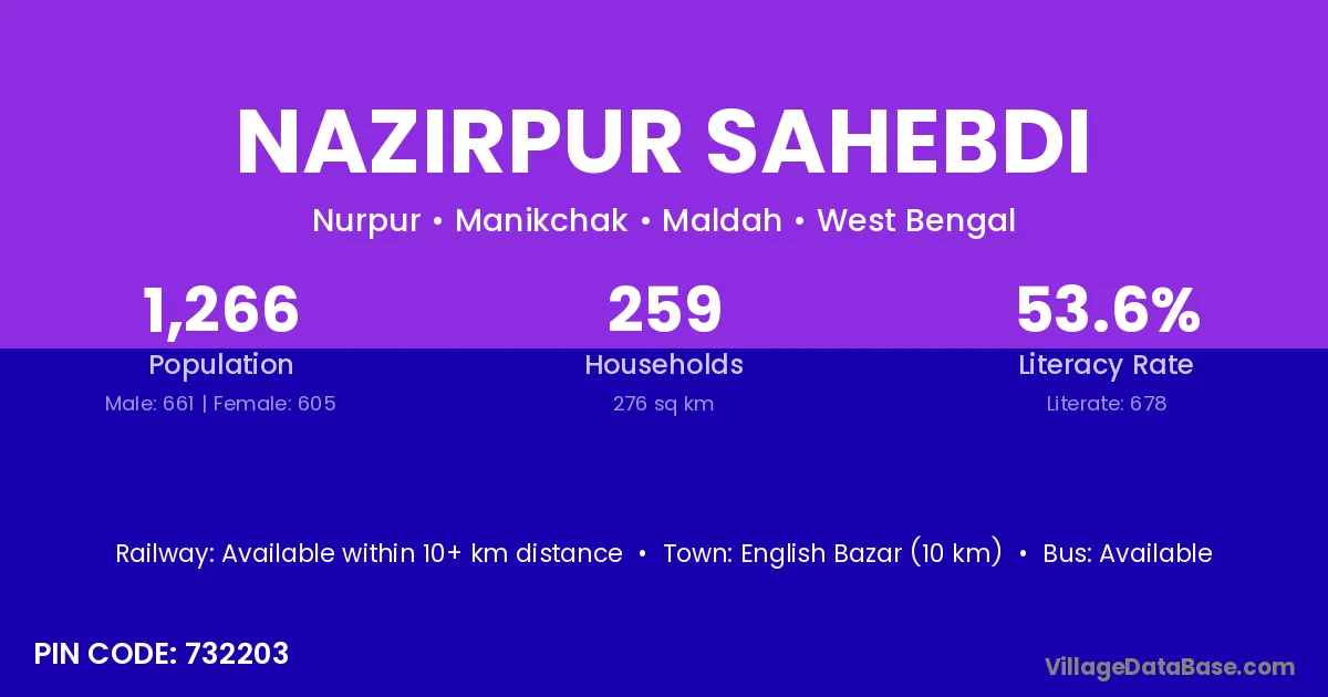 Nazirpur Sahebdi village is located in the Manikchak Subdivision of the Maldah district in West Bengal.