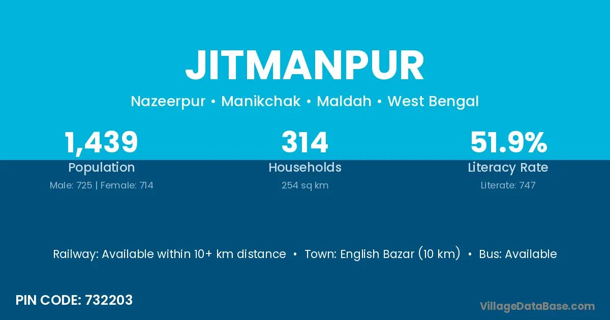 Jitmanpur village is located in the Manikchak Subdivision of the Maldah district in West Bengal.